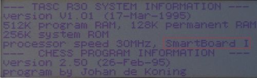 Schwieriger gestaltet sich die Erkennung der alten und neuen SB30 Bretter (äußerlich identisch). Alte SB30 Bretter funktionieren mit R30 V2.2, Gideon 3.1 und V2.5. Neue (Smartboard II) SB30 Bretter nur mit Version V2.5. Die Erkennung ist über den R30 Menü-Punkt "System Information" möglich.
